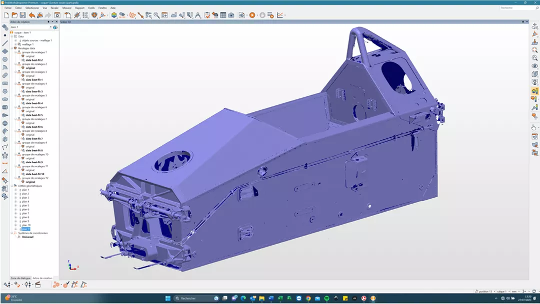 “如果表面上出現(xiàn)孔洞,借助多邊形掃描功能,您只需重新掃描孔洞即可。同時,借助PolyWorks中的選擇工具,我們可以刪除支撐、“清理”像素等。我們以前使用的軟件解決方案的服務提供商總是向我們收取“清理”部件的費用,然后再收取“清理”掃描的費用。Laurent先生說“過去需要半天甚至一整天來完成掃描的零件,現(xiàn)在只需半小時或最多一小時就能完成掃描”,他特別強調(diào)說,即使是鋁制底盤,或者亮黑色、鍍鉻的零件也能輕松完成掃描。