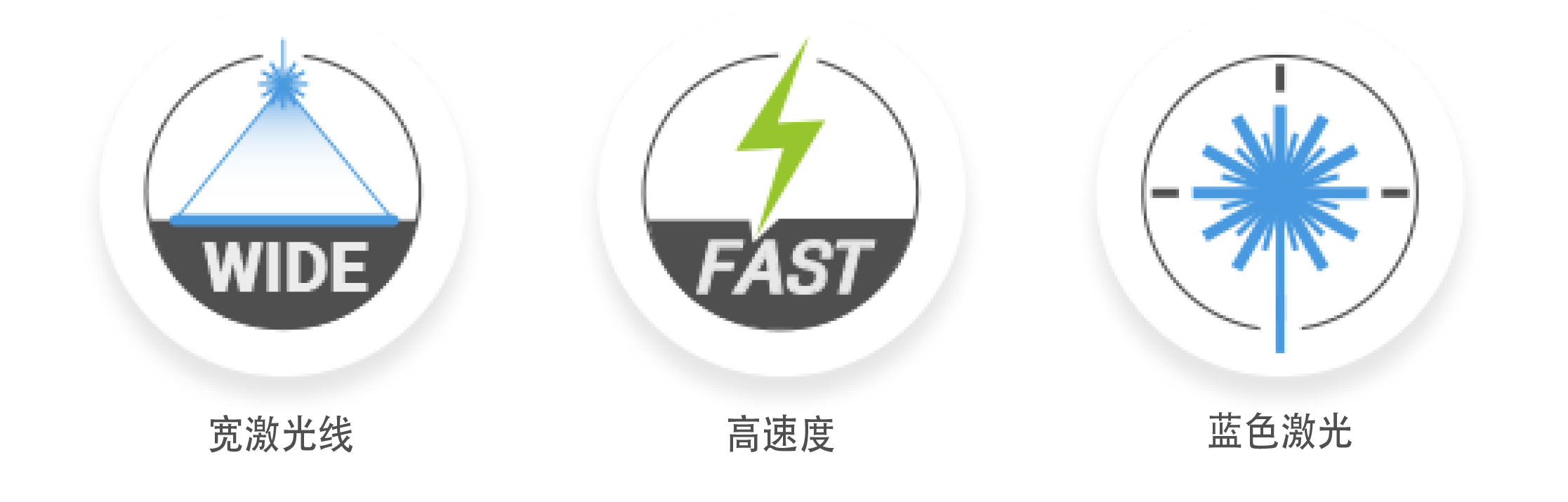 • 藍(lán)色激光優(yōu)化精度,即使在亮色反光表面